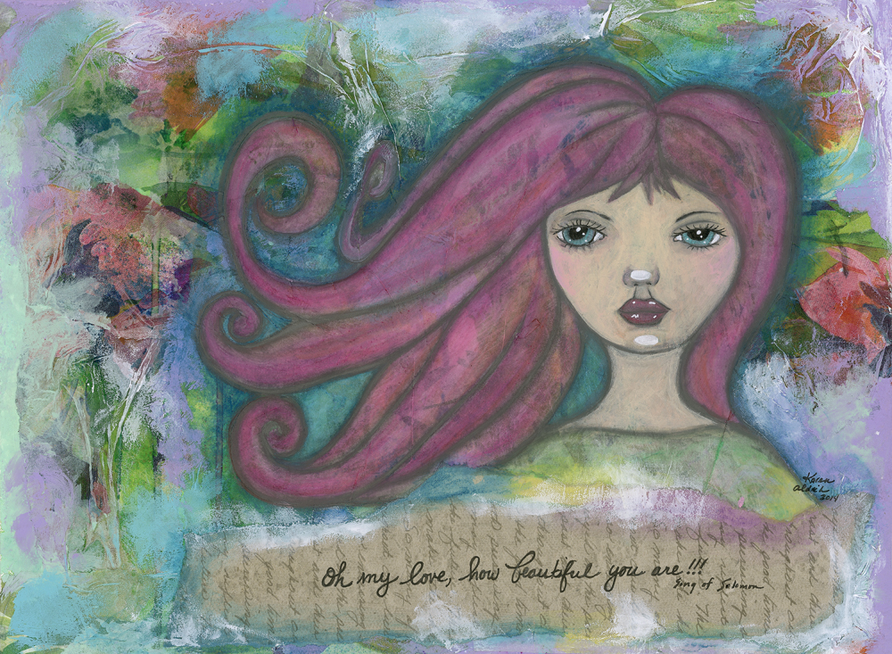 Beautiful This piece is titled Beautiful.She is a mixed media high quality print created by layering paper,watercolor,acrylic and Dylusions ink.She is available in 5×7,8×10,and 11×14.Take her home today! Related Published by karensart05 View all posts by karensart05